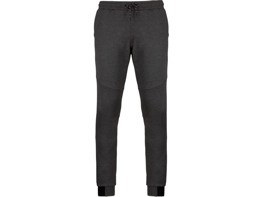 Úzky strih, elastický pás s 2-farebnou šnúrkou, úzke ukončenie nohavíc s elastickou vložkou v kontrastnej farbe, kolenné vsadky, 1 tepelne lepené vrecko na zips vzadu, 2 predné vrecká s džersejovou podšívkou z 65% polyesteru, 35 °, nemožno sušiť v sušičke, nemožno chemicky čistiť310g/m², 79% polyester, 15% viskóza, 6% elastanDodatočné parametre