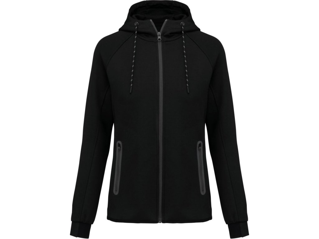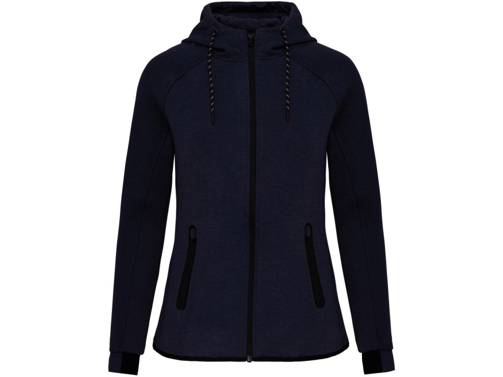 2-farebná šnúrka, manžety v kontrastnej farbe na rukávoch a leme, zips, 2 predné vrecká so zipsom a lepenými švami, prateľné na 40 °, nemožno sušiť v sušičke, nemožno chemicky čistiť310g/m², 79% polyester, 15% viskóza % elastan, kapucňa: 65% polyester, 35% bavlnená džersejová podšívkaDodatočné parametre