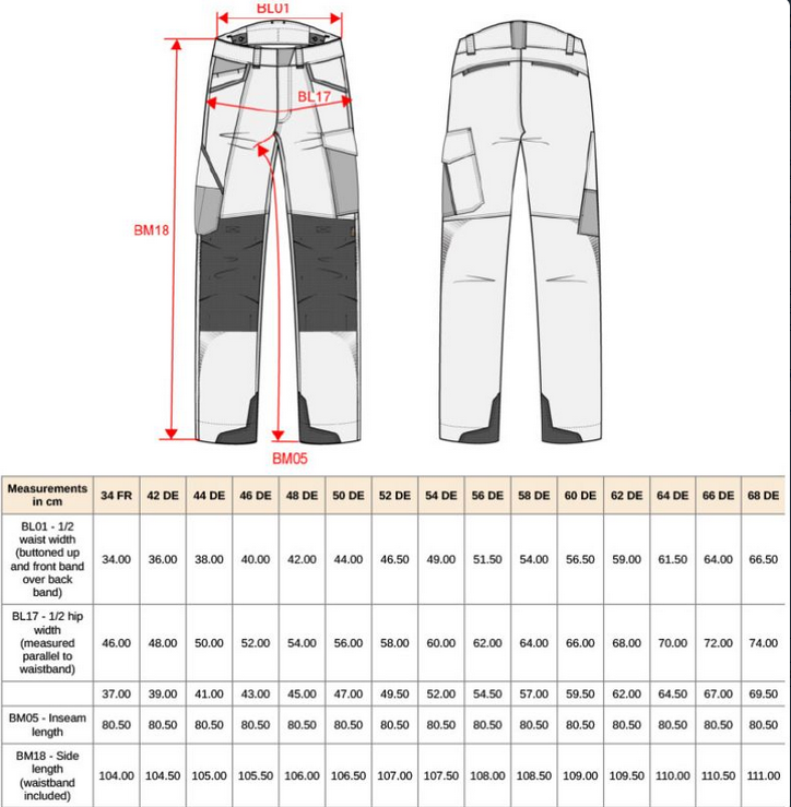 • 5cm manžety nohavíc pre možnosť predĺženia