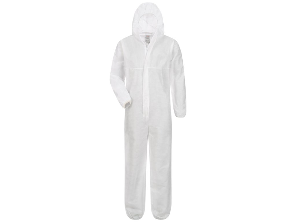 jednorazová, priedušná kombinéza s kapucňou z netkanej textílie,