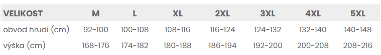 Tabuľka veľkostí: