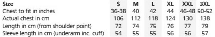Tabuľka veľkostí: