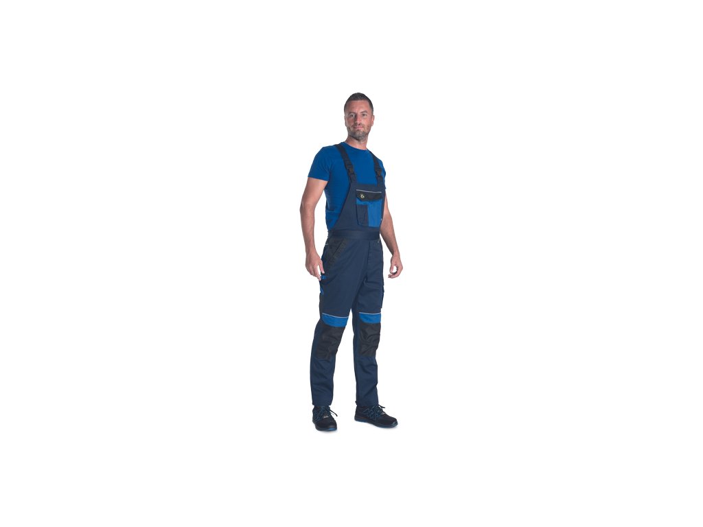 Pánske pracovné nohavice s náprsenkou s elastickým pásom a nastaviteľnou dĺžkou nohavíc