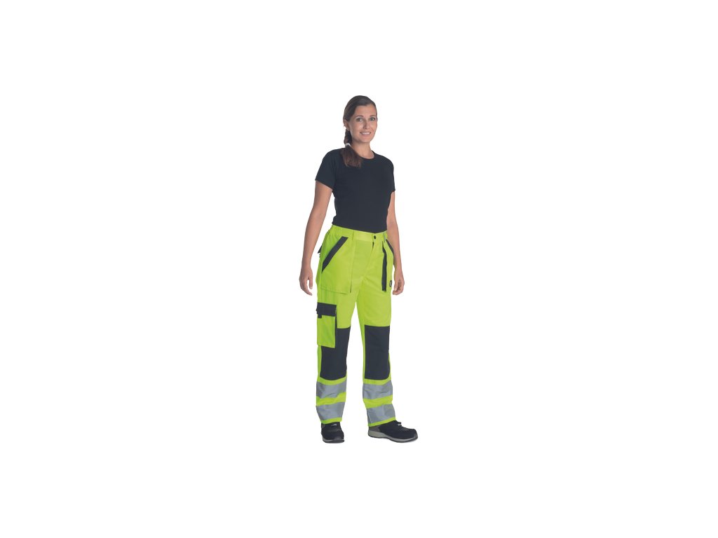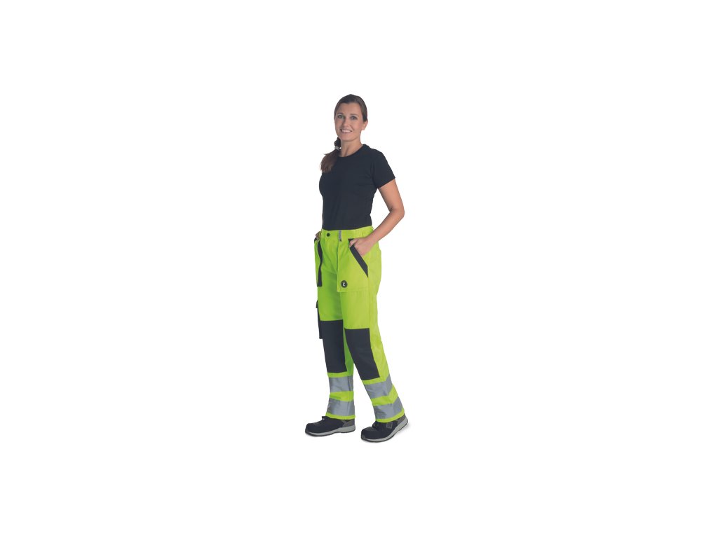 Dámske HI-VIS pracovné nohavice s elastickým pásom a nastaviteľnou dĺžkou nohavíc