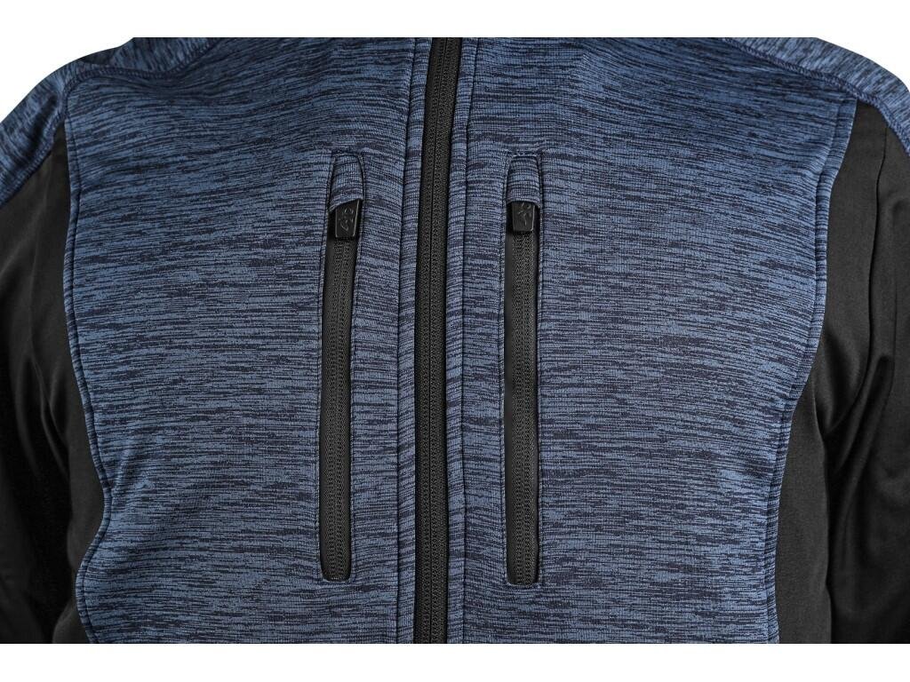 Mikina má zapínanie na zips, náprsné a bočné vrecká na zips a čierne reflexné doplnky.