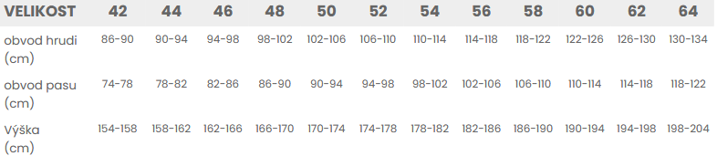 Tabuľka veľkostí: