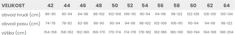 Tabuľka veľkostí: