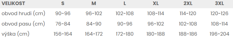 Tabuľka veľkostí: