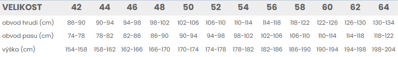 Tabuľka veľkostí: