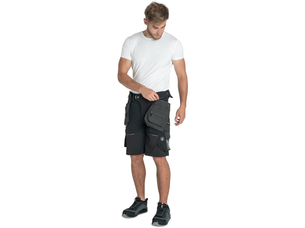 • pánske pracovné šortky s elastickým pásom s 2 bočnými odnímateľnými multifunkčnými "lietajúcimi" vreckami