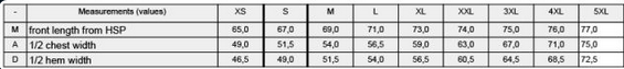Tabuľka veľkostí: