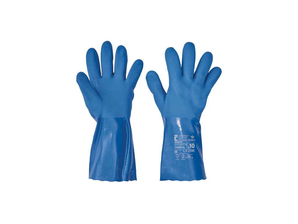 Rukavice z PVC odolné voči chemikáliám s bavlnenou podšívkou a špeciálnou povrchovou úpravou. Rukavice vynikajú ergonómiou a úchopovými vlastnosťami, ľahko sa nasadzujú.Dodatočné parametre