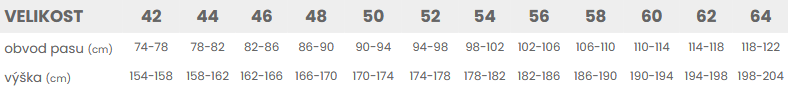 Tabuľka veľkostí: