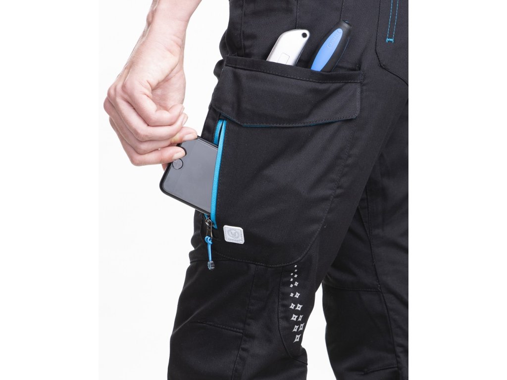 - predné průhmatové vrecká, zadné vrecká kryté pätkou, bočné multifunkčné zdvojené vrecko