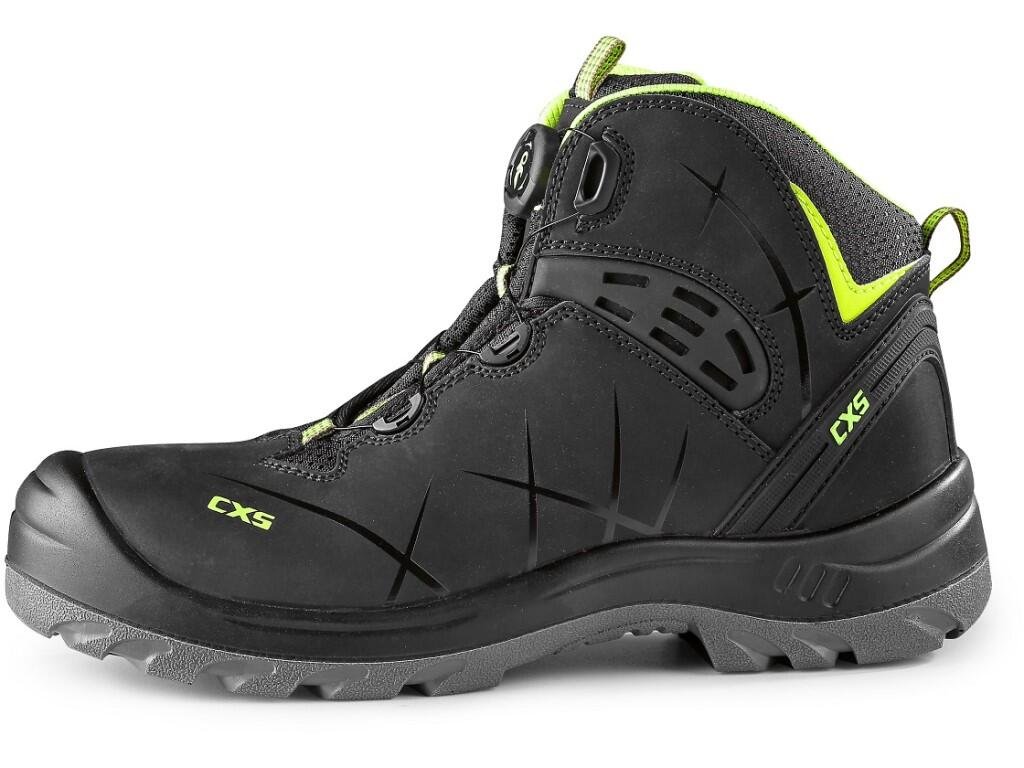 Bezpečnostná členková obuv, kožená s plastovou špičkou a stielkou Dyna-Flex®, reflexné doplnky.Špeciálny systém uťahovania umožňuje rýchle utiahnutie a uvoľnenie topánky.
