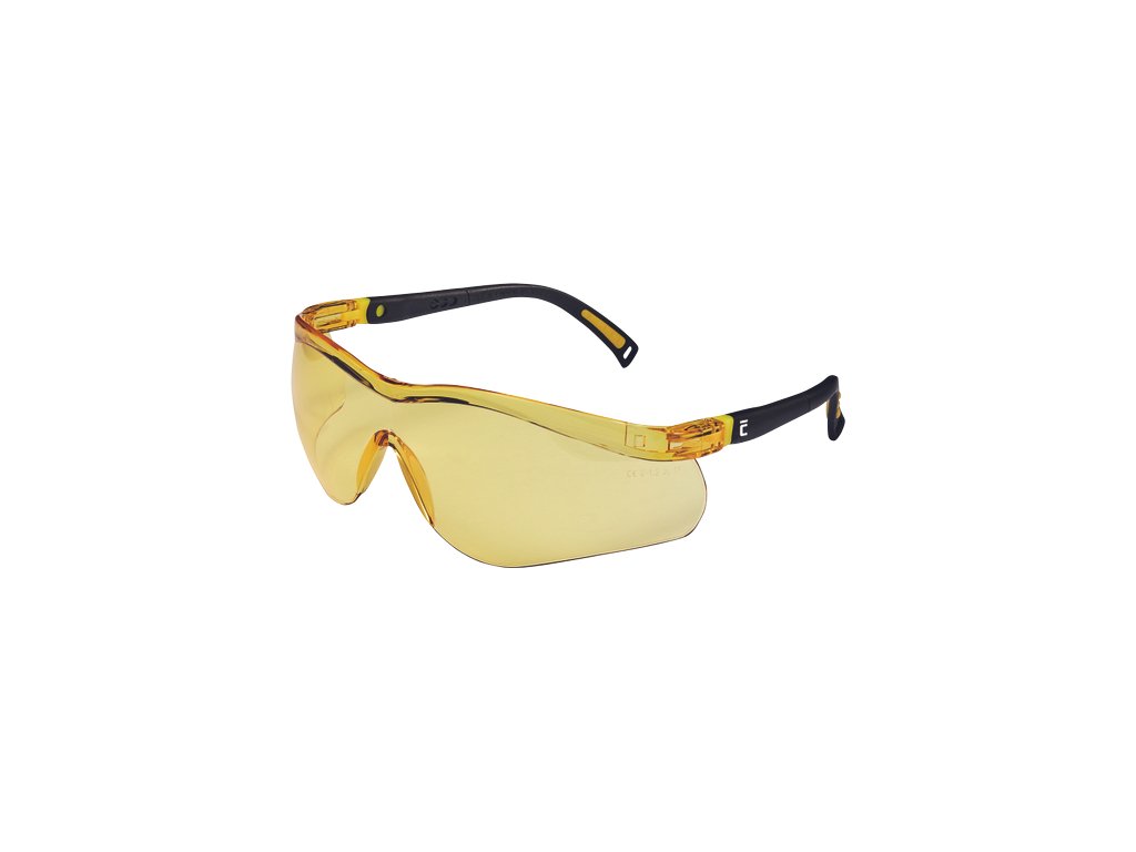 Okuliare s polykarbonátovým zorníkom, nastaviteľným uhlom a dĺžkou stranníc, športovým vzhľadom, zorník s úpravou proti poškriabaniu a oroseniu, trieda F podľa normy EN 166, ochrana proti nárazu s malou energiou, optická trieda 1, žltý zorník s ochranným filtrom proti UV žiareniu podľa normy EN 170.Dodatočné parametre