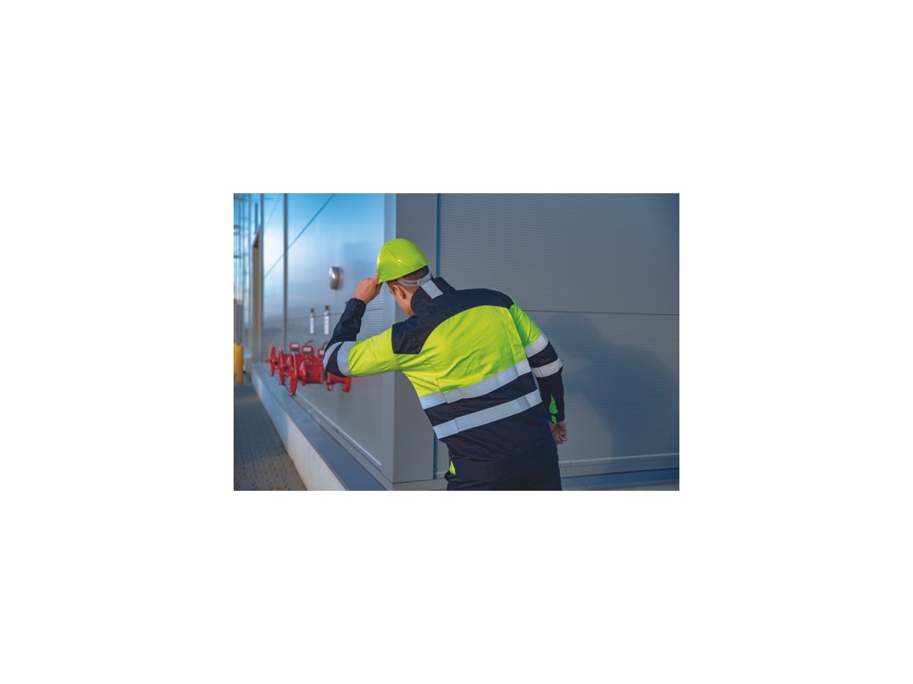 Popis: Prilba z HDPE s ventiláciou, 6-bodovým náhlavným krížom a automaticky nastaviteľnou veľkosťou (53-62 cm) v Hi-vis farbe.