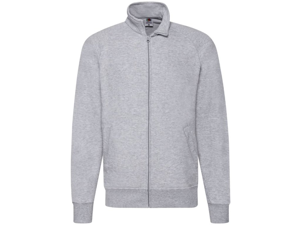 Mikina s raglánovými rukávmi Rebrované elastické náplety na konci rukávov a spodnom okraji Ľahká nepočesaná textília 2 predné vrecká Krytý celoprepínací plastový zips pre ľahšiu potlač Farba Heather Grey je melírovaná / žíhaná