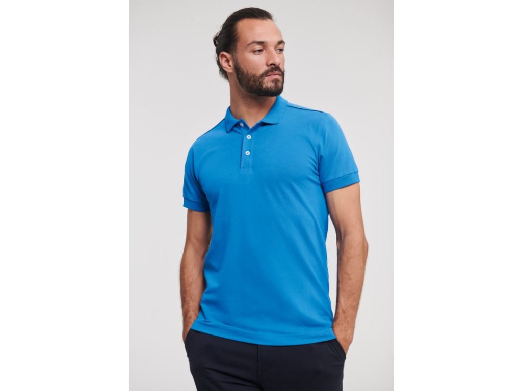 Luxusná pánska polokošeľa s golierikom pique 3 kontrastné gombíky dvojité šitie Dole malý rozparok po stranách Rebrové náplety na koncoch rukávov Vnútorný šev goliera za krkom krytý lemovkou 1x1 menšie rebrový golier Špičková kvalita materiálu a ušitie