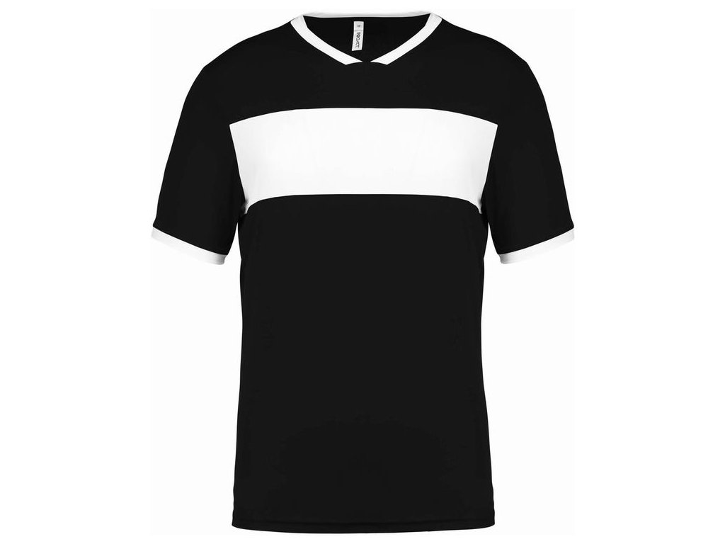 Pevný, pritom jemný interlock materiál Priedušný a rýchloschnúci Výstrih do V Kontrastný lem okolo krku a na koncoch rukávov Široký pruh cez hrudník