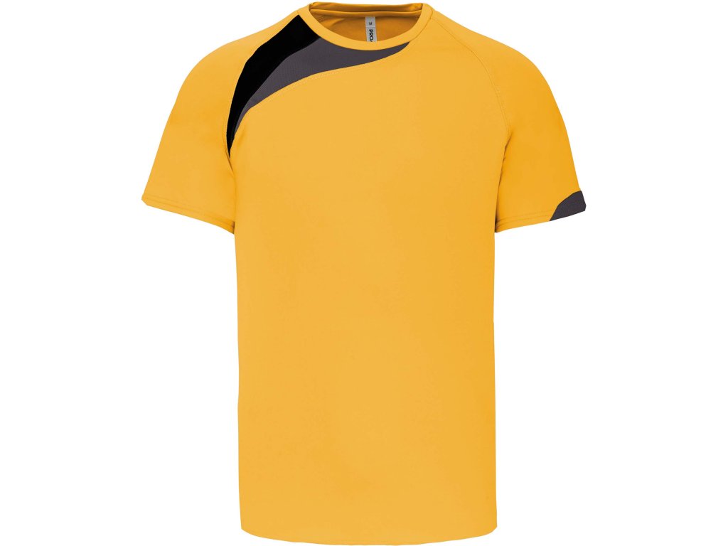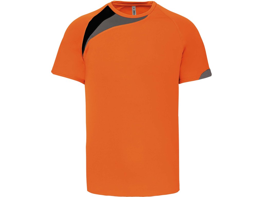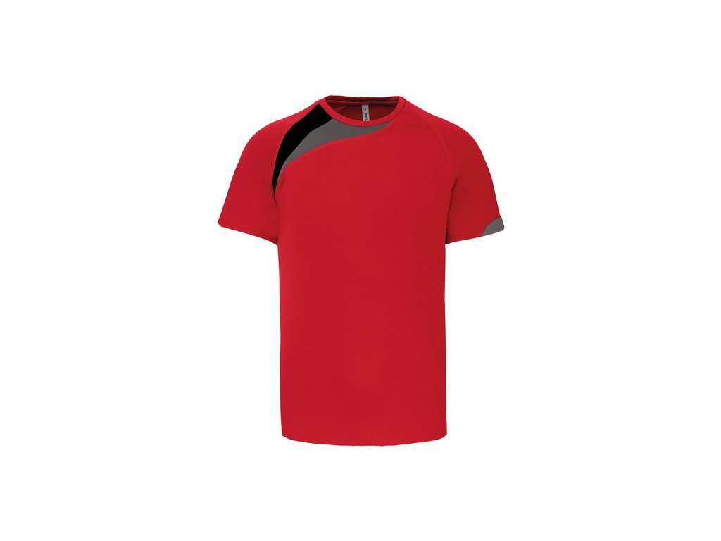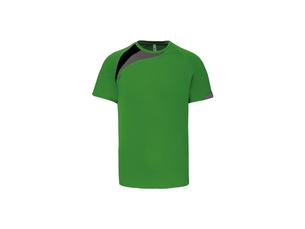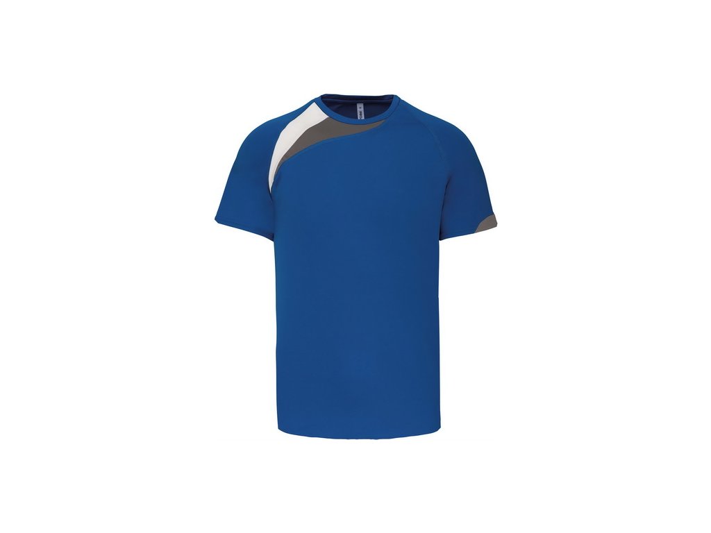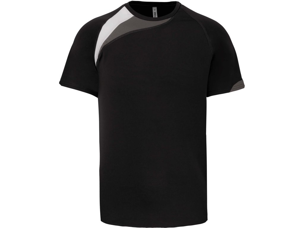 Dvojfarebná ozdobná vsadka na pravom ramene rýchloschnúci materiál Kryci steh zladený s tričkom Zakončenie dvojitým prešívaním