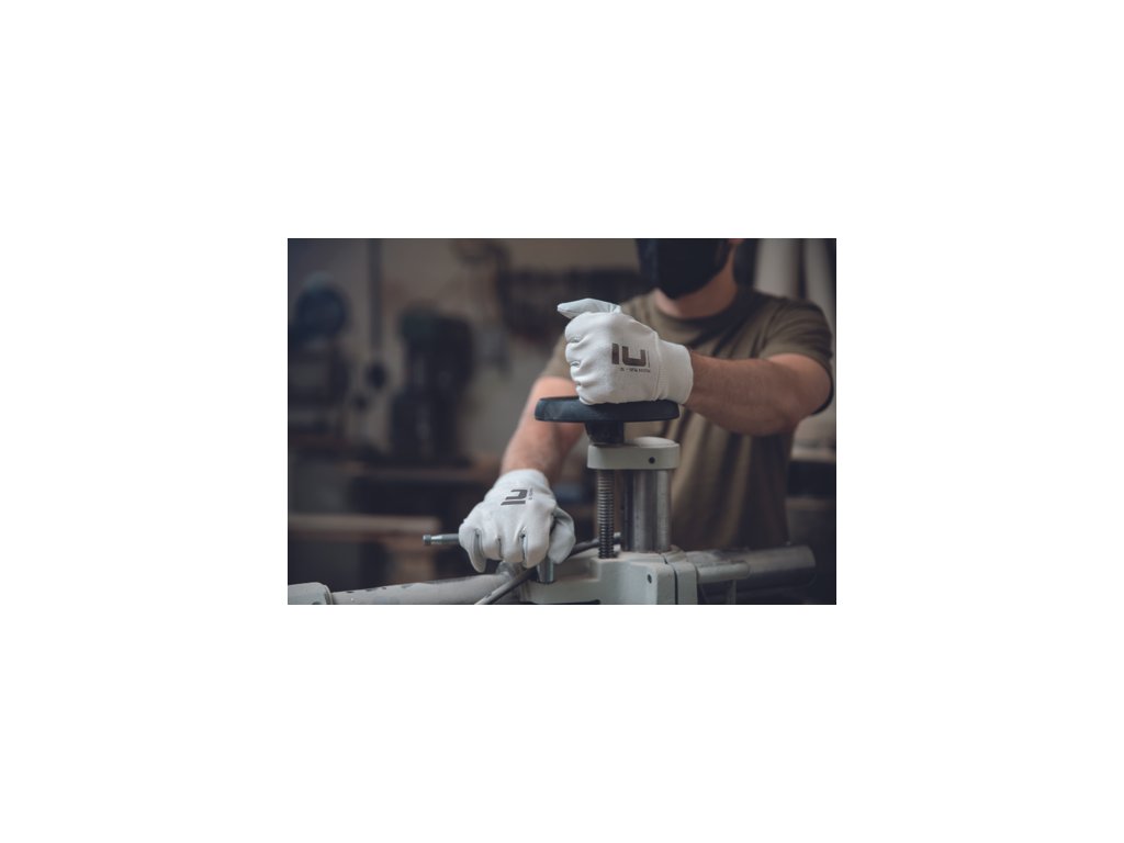 Rukavice šité z jemnej lícovej ovčiny v dlani, bielej bavlnenej tkaniny na chrbte a s nápletom.Dodatočné parametre