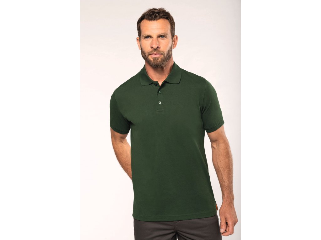 Prateľná na 60C, pique materiál, Eco-friendly polokošeľa, certifikáty OCS a RCS vydané Ecocert Greenlife, zdvojené švy, organická bio bavlna, 40% recyklovaný polyester, klasický rovný strih, kontrastný oranžová lemovka za krkom cez švíky, bočné rozparky s kontrastným vnútorným lemom , rebrové náplety na koncoch rukávov, 3 gombíky vo farbe pola.