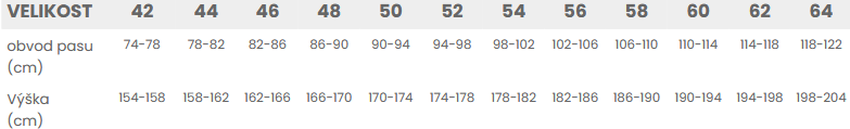 Tabuľka veľkostí: