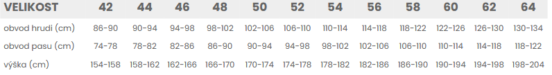 Tabuľka veľkostí: