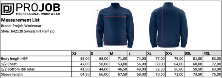 ProJob | 2128 Sweatshirt 1/2 Zip Ťažká pracovná mikina Doubleface s 1/4 zipsom_64.2128