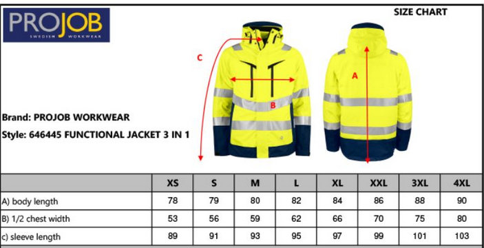 - veľkosti XS certifikované podľa EN ISO 20471 triedy 2 veľkosti S-4XL podľa EN ISO 20471 triedy 3