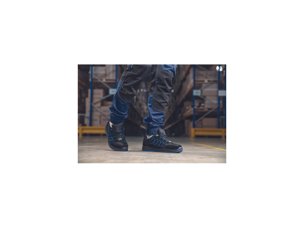 Pohodlná bezpečnostná obuv s oceľovou tužinkou a oceľovou medzipodrážkou proti prepichnutiu, certifikovaná do bezpečnostnej triedy S1P, podľa EN ISO 20345:2022. Antistatická a ESD vložka, dvojitá hustota PU/PU podošvy s absorpciou energie v päte. Odolný zvršok zo štiepanej semišovej kože v kombinácii s oxfordskou látkou. Skvelá voľba pre vnútorné práce, ako je automobilový priemysel, logistika alebo priemyselná výroba.