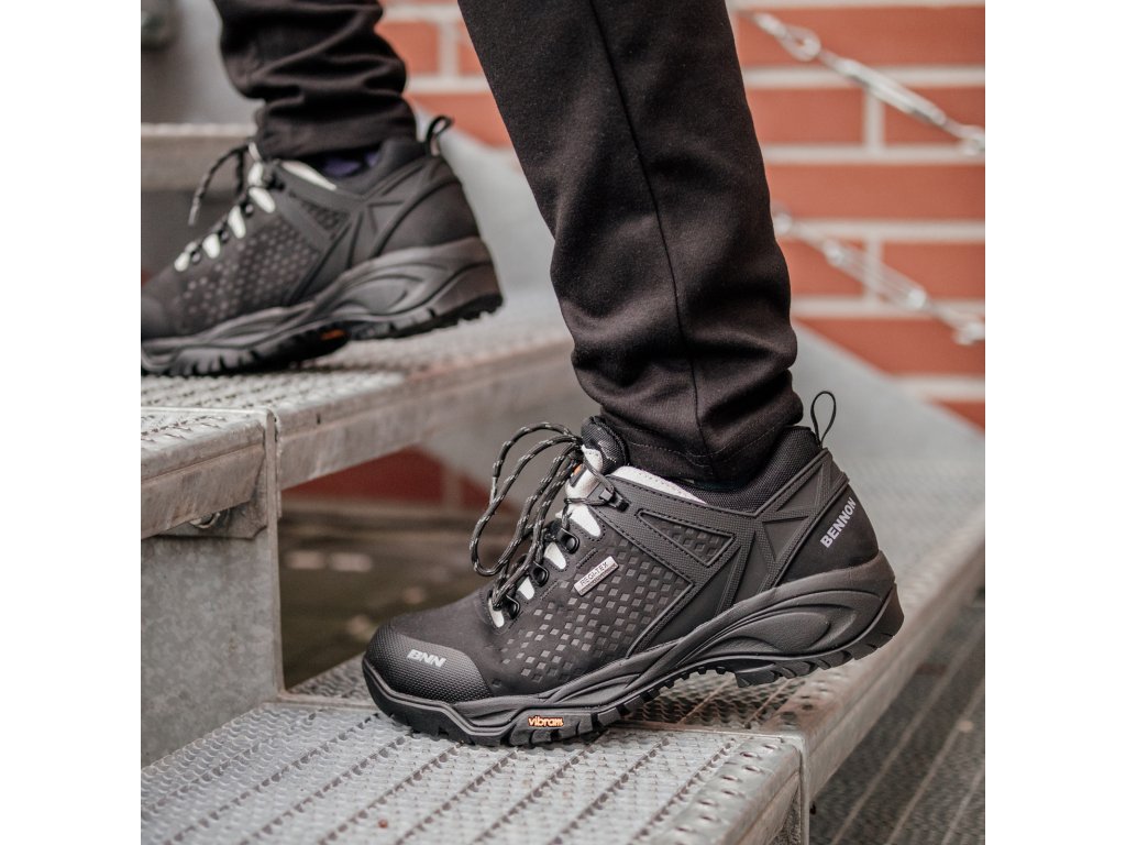 Pohodlná treková obuv športového vzhľadu. Obuv je vybavená vodeodolnou membránou REGI-TEX, chráni tak nohy pred vlhkom a nepriazňou počasia. Vďaka ochrannému TPU dielu v pätovej časti je chodidlu poskytnutá maximálna istota v nášľape, lepšia stabilita pri chôdzi. TPU povrstvenie zvyšuje odolnosť špice pri chôdzi v členitom teréne (ochrana proti okopu). Podrážka Vibram má protišmykovú SRC vlastnosť, navyše je odolná proti kontaktnému teplu. Obuv disponuje reflexnými prvkami.Použitie: pracovná obuv, bežné nosenie aj outdoorové aktivity