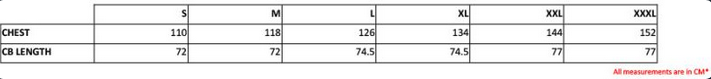 Tabuľka veľkostí: