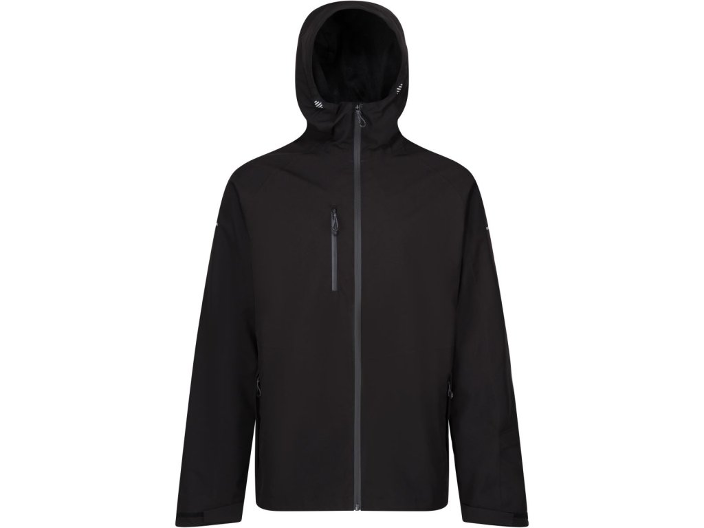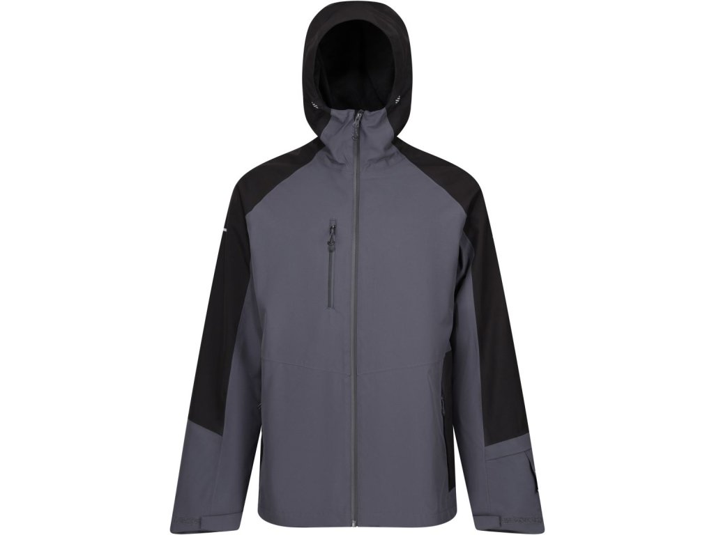 Vodeodolné (10.000mm vodný stĺpec), priedušné (10.000g/m² za 24h), zostrihnutá nastaviteľná kapucňa, pasujúci dizajn rukávov, nastaviteľné manžety so suchým zipsom, nastaviteľný lem so šnúrkou, zips s ochranou brady, vnútorné vrecko na vrecko, a 1 náprsné vrecko so zipsom, podlepené švy, trup s podšívkou zo sieťoviny, prístup k zušľachteniu v podšívke, 4-cestný strečový materiál, vetranie v podpazuší na zips, reflexný detail, integrovaná baterka s dobíjacou batériou vo vrecku rukávu16 polyester, obsahuje minimálne 50% recyklovaného polyesteru (rPet), Isotex 10000Dodatočné parametre
