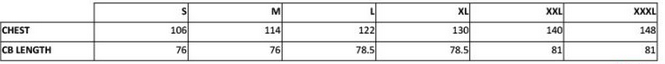 Tabuľka veľkostí: