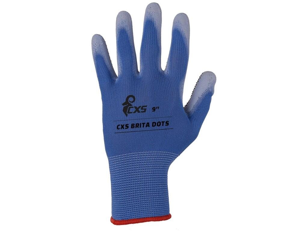 Pletené bezšvíkové rukavice s PVC terčíkmi v dlani a tenkou vrstvou polyuretánu v dlani a na prstoch.Odporúčané aplikácie: automobilový priemysel, elektronika, logistika, skladovanie, montáž a balenie malých súčiastok, záhrada, úkony ľahkej montáže.