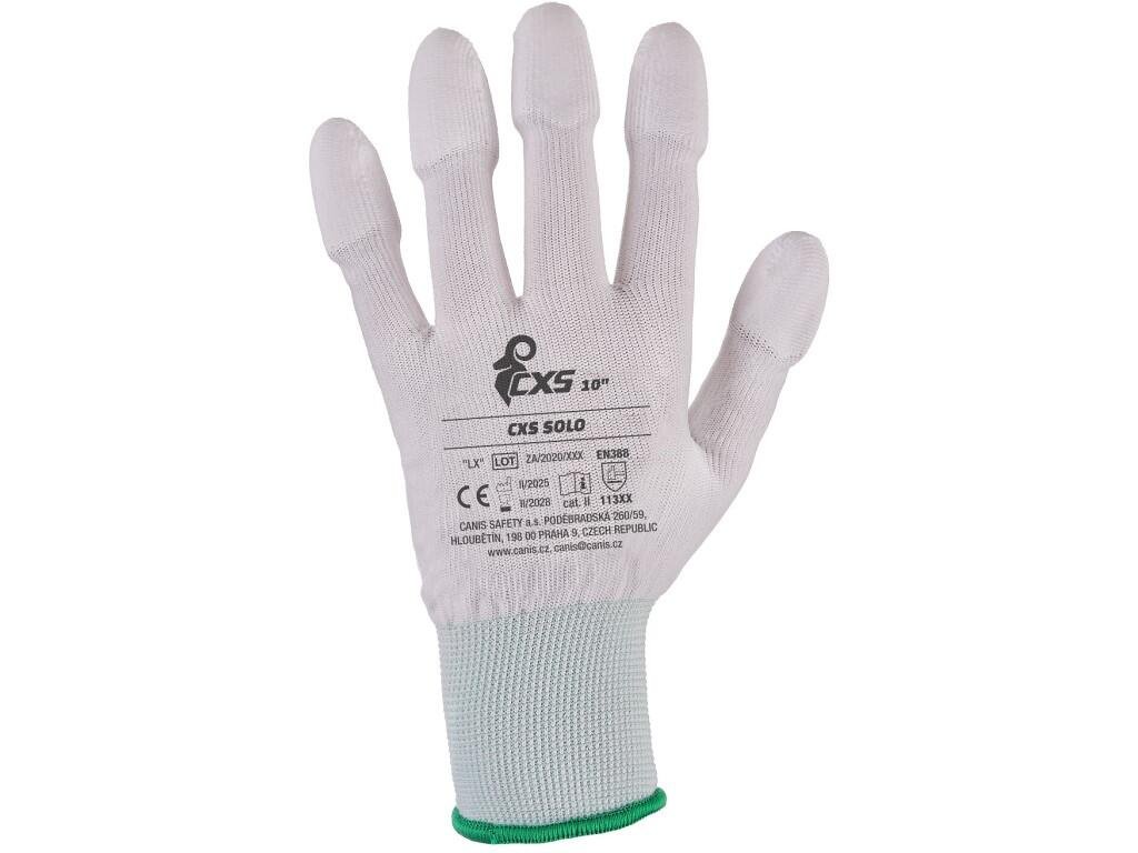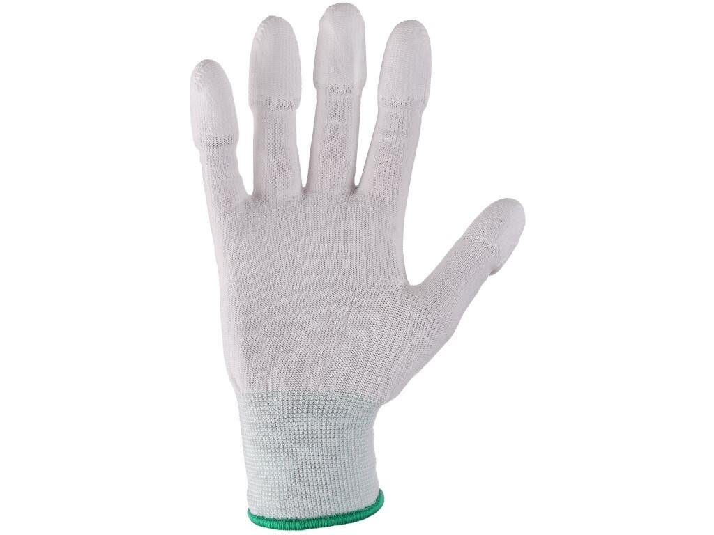 Rukavice s koncami prstov máčanými v polyuretánu.Odporúčané použitie: montáž, kontrola a balenie malých súčiastok v suchom prostredí.