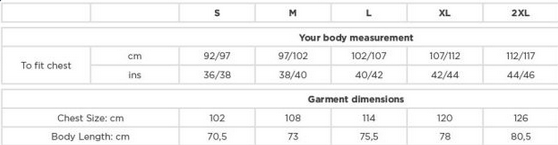 Tabuľka veľkostí: