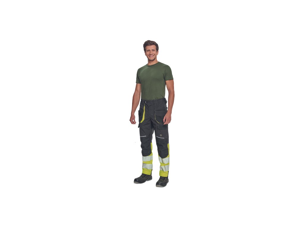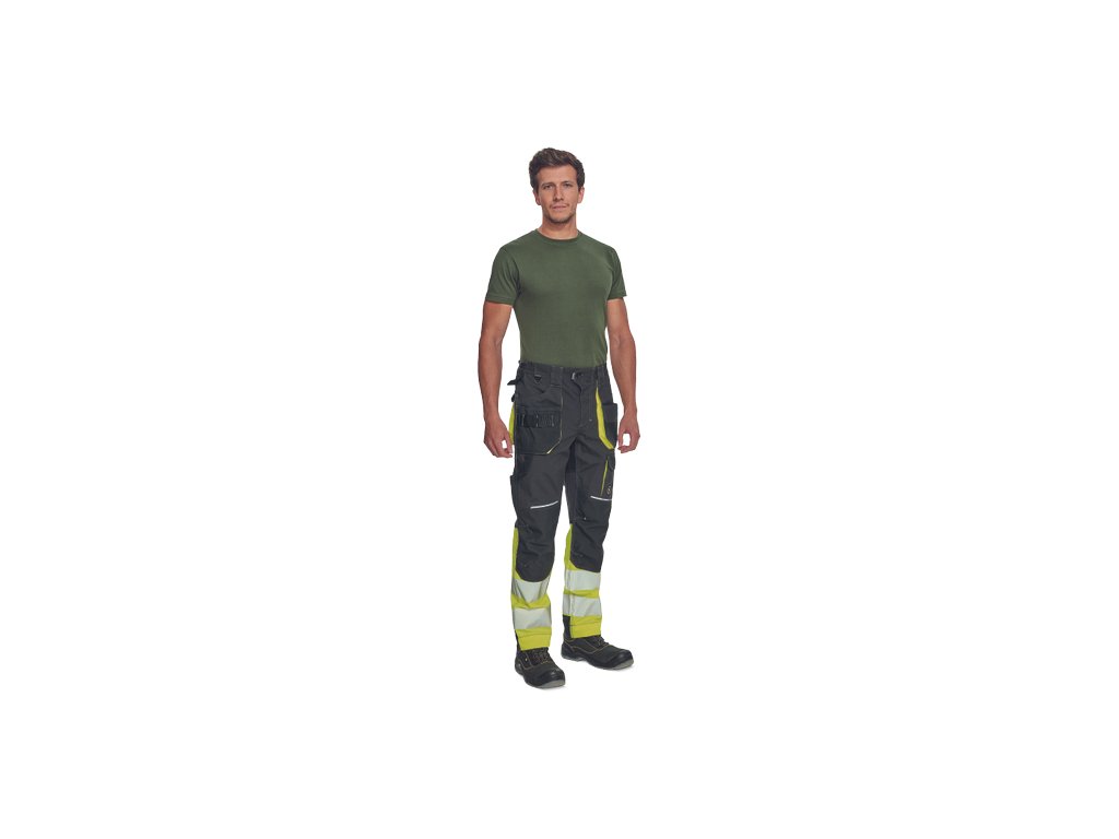 Pánske pracovné HI-VIS nohavice s pružným pásom, multifunkčnými vreckami a nastaviteľnou dĺžkou nohavíc