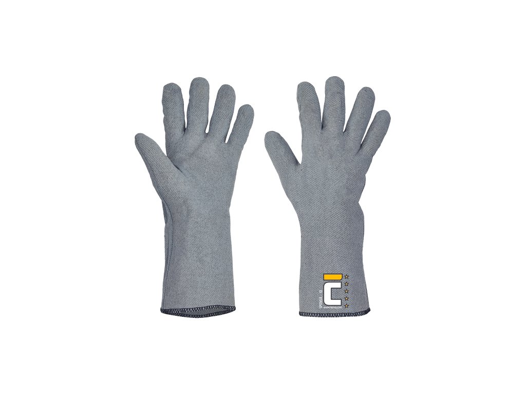 Rukavice šité zo špeciálnej tkaniny, máčané v nitrile, s termoizolačnou podšívkou z netkanej textílie. Vhodné pre manipuláciu s horúcimi predmetmi do 250 °C.Dodatočné parametre