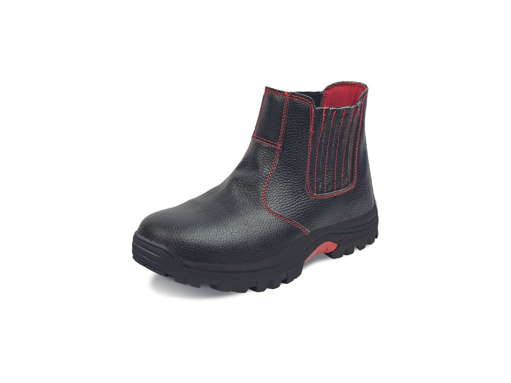 • bezpečnostná nazúvacia členková obuv s kovovou bezpečnostnou špicou a stielkou odolnou voči prepichnutiu • gumovou HRO podrážkou odolnou voči vysokým teplotám (až 300°C) a olejom • vysoká odolnosť voči pošmyknutiu • zvršok z kože