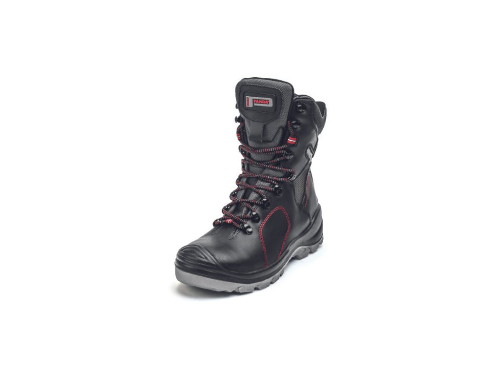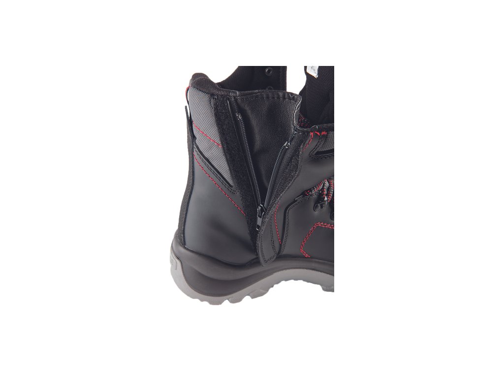 Bezpečnostná zateplená vysoká obuv s oceľovou tužinkou a stielkou, TPU podošvou rezistentnou voči kyselinám a olejom, PU chráničom špičky, podšívkou WINTHERM®, úpravou proti množeniu plesní a baktérií a zvrškom z kože v kombinácii s textilom.