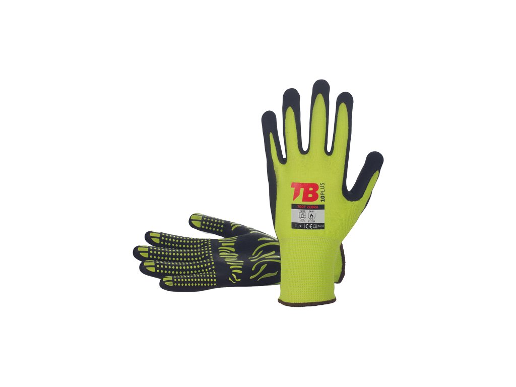 • reflexní žluté rukavice z bavlny a elastanu máčené v pěnovém nitrilu se speciálním PVC povrstvením na dlani a prstech pro zlepšení úchopu • pletená manžeta • hustota úpletu 13 GGDodatočné parametre