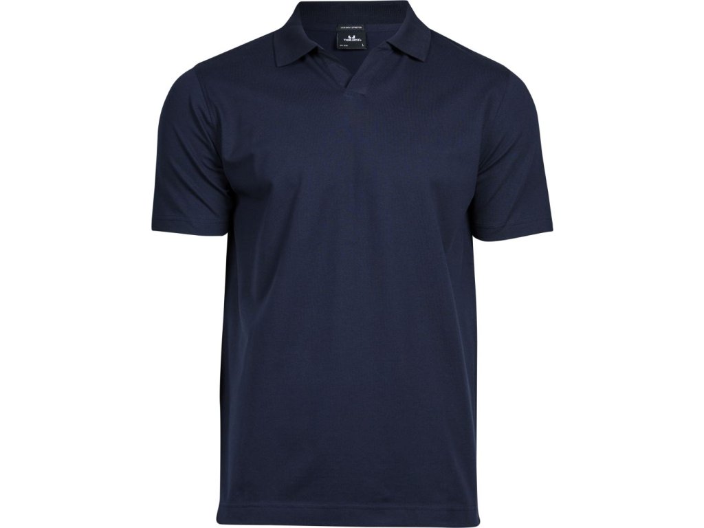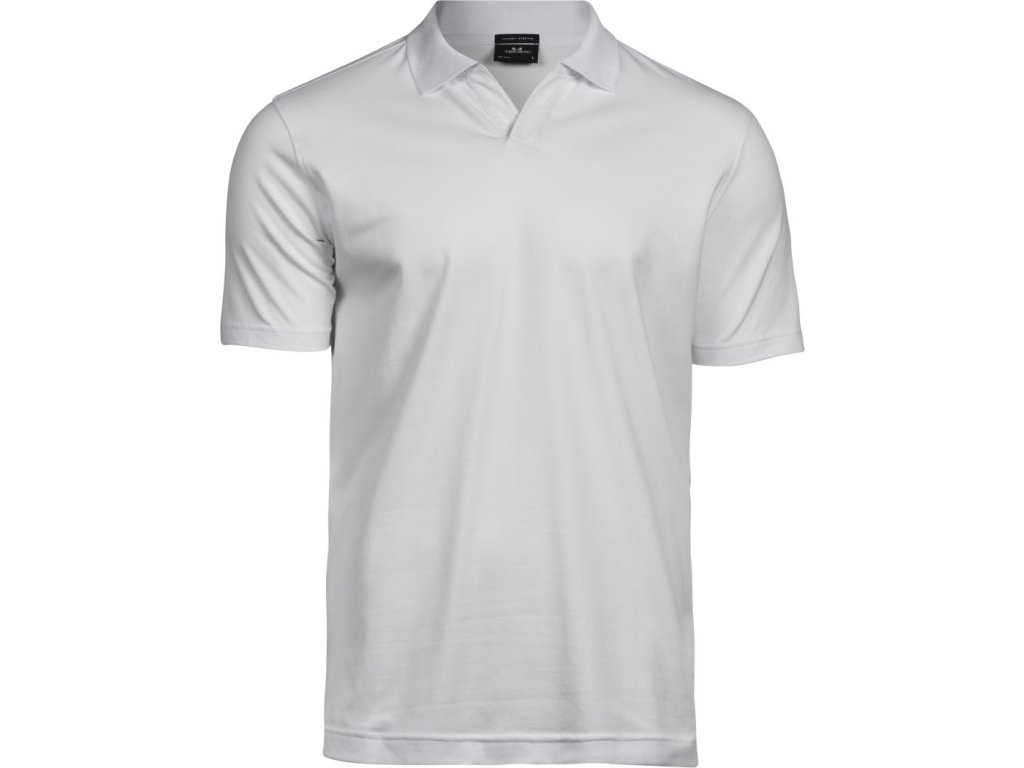 Ľahko vypasovaný strih, plochý pletený golier s elastanom, výstrih do V bez gombíkov, krčná lemovka so vzorom rybej kosti, rebrované manžety, dvojité švy na ramenách a prieramkoch, bočné rázporky215g/m², 95% dvakrát predzrazená, česaná prstencová certifikovaná % elastan, silikónové pranie, enzymaticky pranéDodatočné parametre