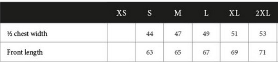 Tabuľka veľkostí: