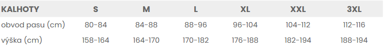 Tabuľka veľkostí: