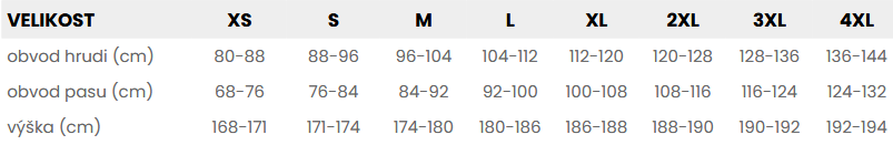 Tabuľka veľkostí: