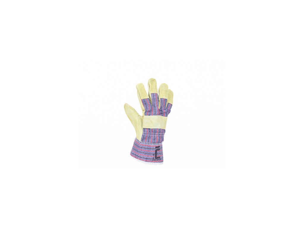Rukavice z hovädzej štiepenky v dlani s podšívkou, chrbát a manžeta z bavlnenej tkaniny.Dodatočné parametre