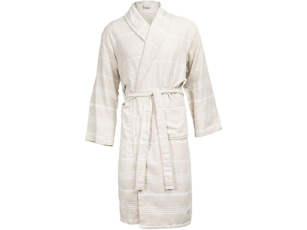 Šálový golier, 2 našité vrecká, opasok na zaviazanie, pútko na zavesenie, prateľné na 30 °, nemožno sušiť v sušičke500g/m², 100% bavlnaDodatočné parametre